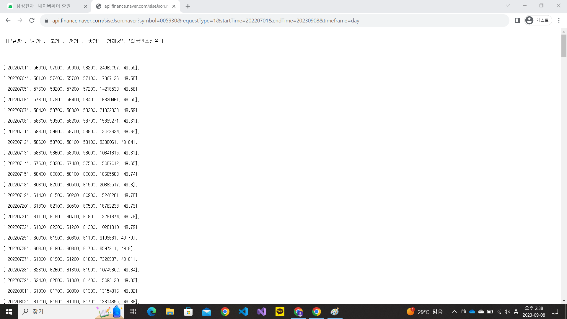 [네이버 증권] -> [삼성전자 검색] -> [차트]에 들어가신 후, 개발자 도구 화면에서 네트워크를 키십니다. (링크)