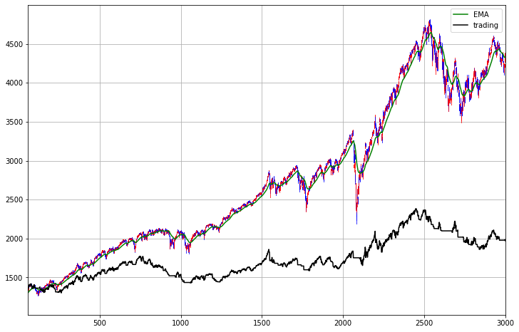 s&p500의 3000일에 대한 일봉 데이터를 가지고 저의 알고리즘을 백테스팅해보겠습니다.