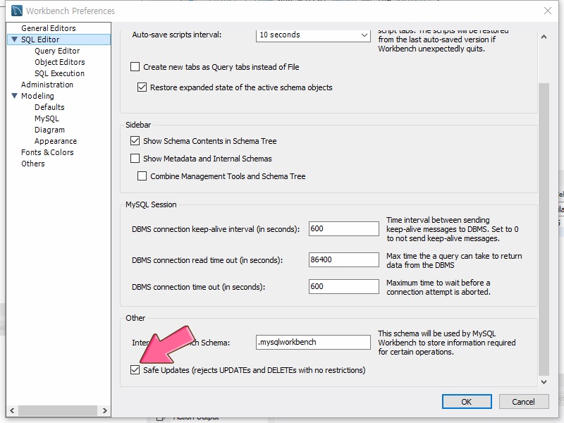 이것은 update나 delete구문의 제한없는 사용을 방지하는 모드입니다.