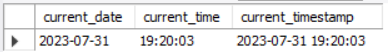 select current_date, current_time, current_timestamp;